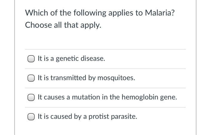 Solved Which Of The Following Applies To Sickle Cell Anemia Chegg Com
